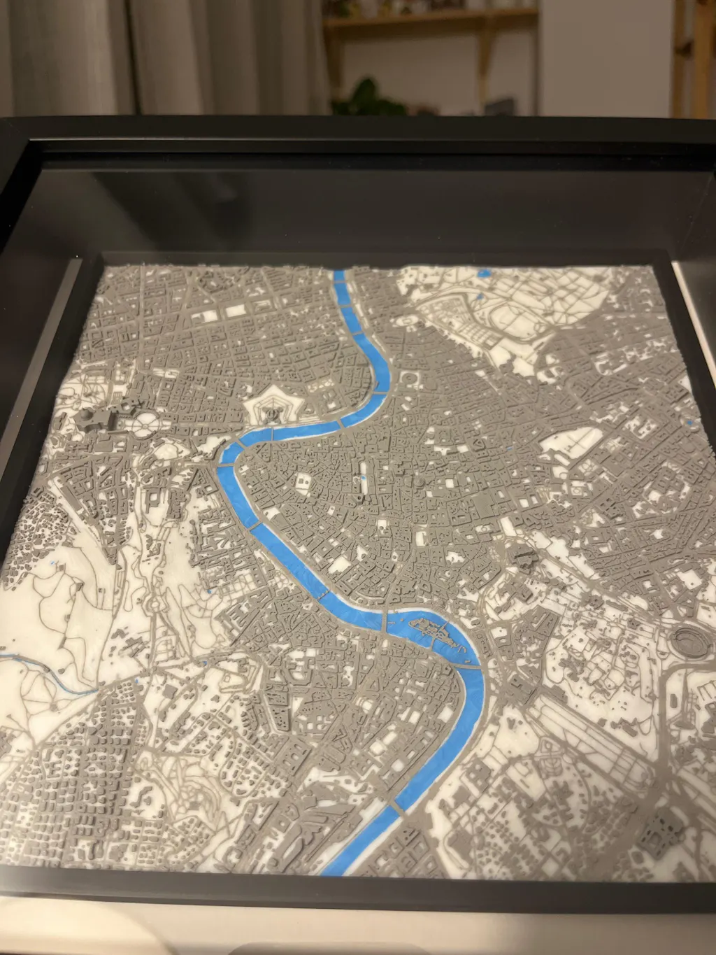 Offrez-vous un morceau d’urbanisme miniature avec cette carte de Rome imprimée en 3D, une pièce unique qui capture avec précision le relief, les bâtiments et les rues emblématiques d’un lieu qui vous est cher. C’est une œuvre d’art moderne entièrement personnalisable, parfaite pour revivre vos souvenirs, célébrer un voyage inoubliable ou simplement sublimer votre intérieur.